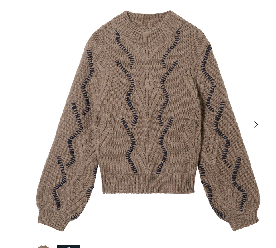Jumper 1234 cashmere and wool jumper. Heavy weight Aran jumper in moose with navy stitch detail. Balloon sleeves and a turtle neck, Slightly oversize fit and also available in charcoal and cream. Heaven in a jumper?